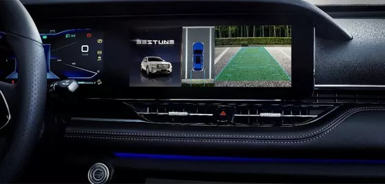 Спеціальний процесор обробляє та об’єднує відеопотоки всіх камер огляду 360 градусів в єдине панорамне зображення. Все, що відбувається навколо позашляховика, відображається на моніторі в режимі реального часу не лишаючи сліпих зон.